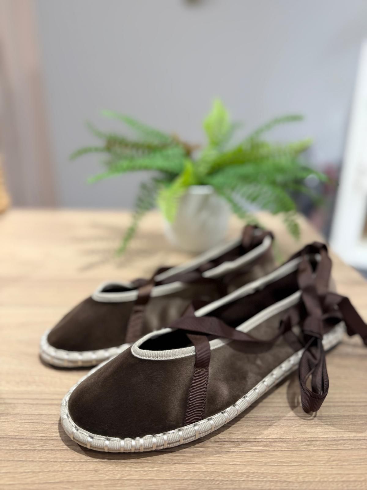 Merceditas de terciopelo en tono marrón, suaves y elegantes, con cinta ajustable para un ajuste cómodo y seguro. Diseño clásico y atemporal con suela de gel que aporta ligereza y confort, ideales para acompañar cualquier look con un toque delicado y femenino.